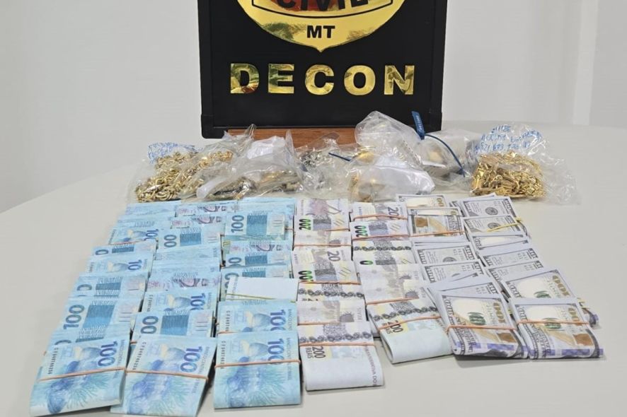 Além do dinheiro falso, a Polícia Civil ainda apreendeu diversas correntes e pingentes de cor dourada que aparentavam ser de ouro. Contudo, após análise preliminar do material em uma joalheria de Cuiabá, foi constatado que os itens similares a joias que foram apreendidos eram feitos de uma espécie de metal semelhante a estanho e latão, muito parecido com a liga utilizada para fazer medalhas de premiações de provas amadoras.