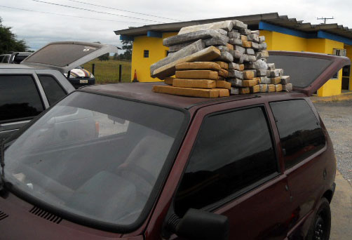 Os agentes da PRF suspeitaram de dois ocupantes de um veículo Uno com placas de Amambaí, município de Mato Grosso do Sul, que faz divisa com o Paraguai, e resolveram abordá-los. O motorista Elielton Leandro Lopes da Rosa, 21 anos, e o passageiro Anderson Lima, 22, tentaram fugir, mas não conseguiram. Eles levavam a droga sobre os bancos traseiros sem qualquer preocupação em escondê-la, segundo a PRF.