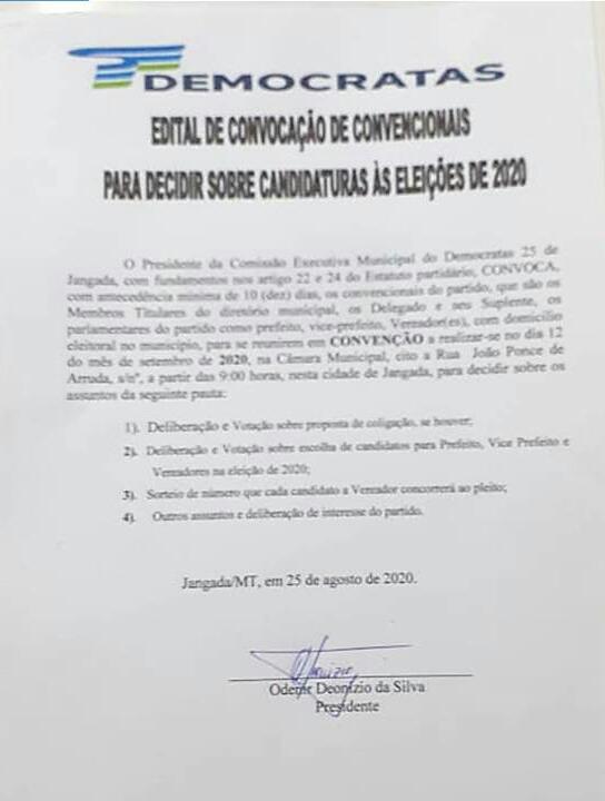 Convenções partidárias dão largada para a corrida eleitoral em Jangada, CONFIRA