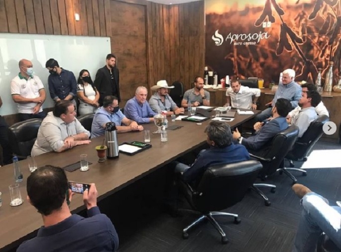 O deputado federal Eduardo Bolsonaro (PSL), filho do presidente da República Jair Bolsonaro (sem partido), esteve em Cuiabá na tarde desta quinta-feira (17) e participou de uma reunião política onde falou a respeito do Instituto Conservador Regional. O encontro aconteceu na Aprosoja e reuniu nomes como Reinaldo Moraes (PSD), o ‘Rei do Porco’, e Dilceu Rossatto (Republicanos), ex-prefeito de Sorriso.