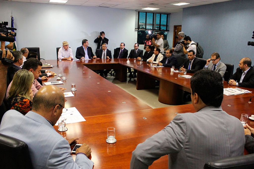 O Colégio de Líderes da Assembleia recebeu, na tarde desta terça (24), o projeto de reforma administrativa do Poder Executivo, elaborado pela equipe do governador Pedro Taques (PDT). O projeto extingue 1.130 cargos comissionados em todos os setores e prevê a fusão ou extinção de diversas pastas. A reunião ocorreu no gabinete do presidente do Legislativo, deputado Guilherme Maluf (PSDB), com a participação dos secretários Paulo Taques (Casa Civil), Marco Marrafon (Planejamento), Júlio Modesto (Gestão) e Jean Campos (Comunicação).