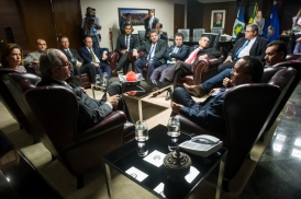 Aproveitando a visita do presidente da Câmara à capital de Mato Grosso, o governador também solicitou um encontro entre os governadores dos estados brasileiros, tendo como pauta o Pacto Federativo. Taques destacou a importância do presidente da Câmara para fomentar esse debate bem como a independência “com harmonia” entre os poderes Legislativo e Executivo. “Precisamos da sua liderança para que os estados produtores possam receber o que é devido. Mato Grosso ajuda muito o Brasil e o Brasil precisa ter um olhar diferenciado e ajudar mais Mato Grosso”.