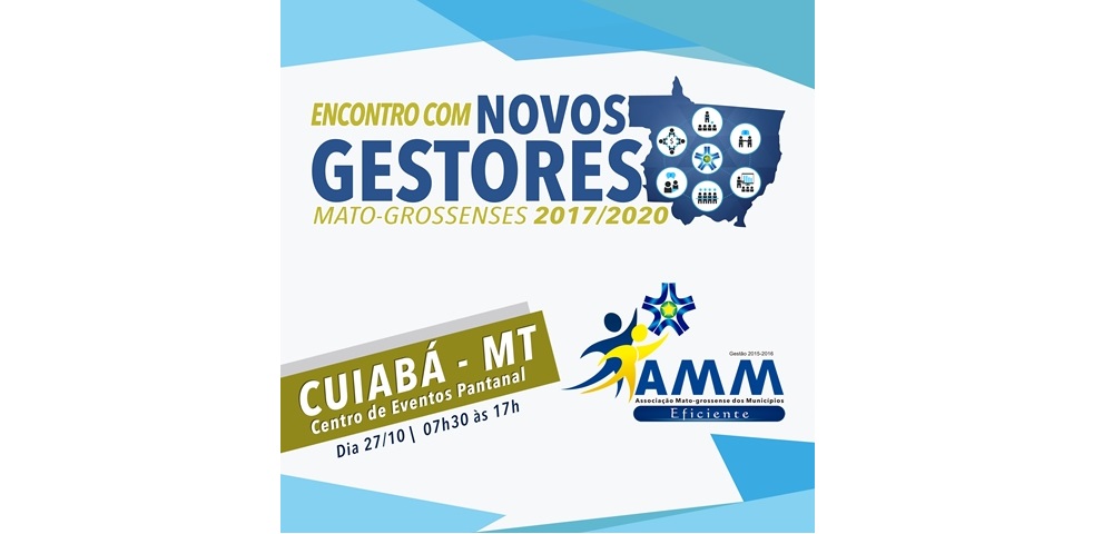 A Associação Mato-grossense dos Municípios e a Confederação Nacional dos Municípios promovem na próxima quinta-feira (27) o Encontro com os Novos Gestores Mato-grossenses. O objetivo do evento é reunir os prefeitos eleitos e reeleitos no último pleito para discutir os principais temas da pauta municipalista e principalmente os desafios que as administrações municipais vão enfrentar nos próximos quatro anos.